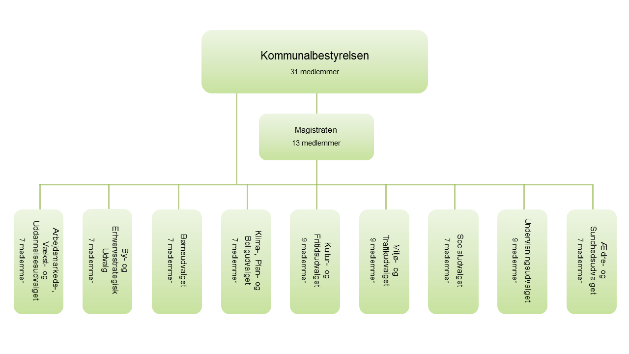 Frederiksberg Kommunes politiske organisation for 2026-2029 består af kommunalbestyrelsen, magistraten, de stående udvalg samt nogle midlertidige udvalg, der er etableret efter styrelseslovens §17, stk. 4.